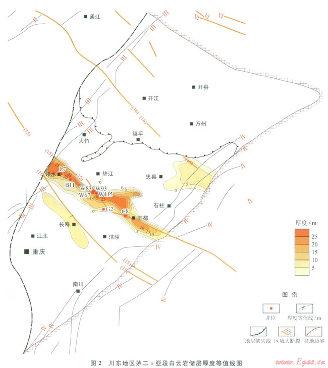 2)地球化學(xué)特征分析表明,川東地區(qū)茅二a亞段白云巖為熱水成因,與正常水成成因不同,基底斷裂控制了該套白云巖儲(chǔ)層的平面展布。