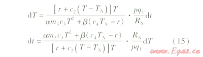 (18)表示了常壓罐預(yù)冷時間t與罐內(nèi)溫度T的關(guān)系。