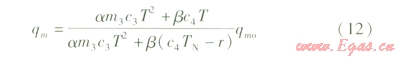 (17)即為常壓罐預(yù)冷液氮流量qm與罐內(nèi)溫度T的關(guān)系。把上述各參數(shù)代入式(15)得: