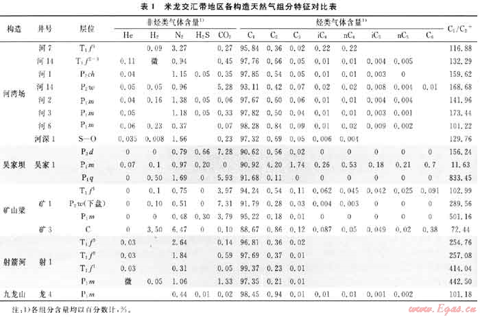 1 氣田天然氣地球化學特征