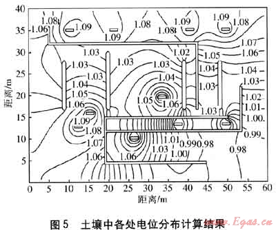 利用數(shù)值模擬技術計算了該廠站內(nèi)陰極保護電位的分布,計算所采用的數(shù)學模型見文獻[23]。