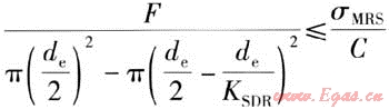 按GB 15558.1—2003《燃?xì)庥寐竦鼐垡蚁?PE)管道系統(tǒng)第1部分:管材》3.2.4條關(guān)于設(shè)計(jì)應(yīng)力的定義:設(shè)計(jì)應(yīng)力σs指規(guī)定條件下的允許應(yīng)力,計(jì)算公式為: