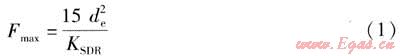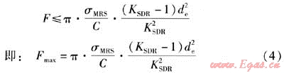 規(guī)程的公式過(guò)于簡(jiǎn)單,公式表示Fmax僅與PE管材的公稱外徑de及標(biāo)準(zhǔn)尺寸比KSDR有關(guān)。修正后的公式相對(duì)復(fù)雜,增加了σMRS和C兩個(gè)變量,這就克服了規(guī)程公式的不足之處,可以充分體現(xiàn)PE管道性能及總體設(shè)計(jì)系數(shù)的差異性。