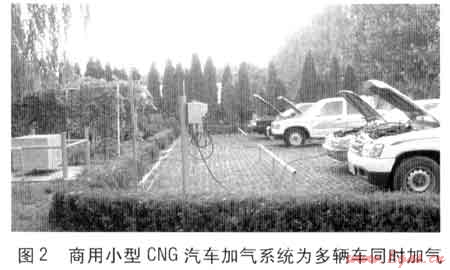 小型CNG汽車加氣系統(tǒng)是專門為天然氣汽車加氣開發(fā)的,主要服務(wù)于私家車、商務(wù)車、工廠叉車、市政車、垃圾車、大型公交車隊、駕校車隊等,可為多輛天然氣汽車提供經(jīng)濟(jì)的現(xiàn)場加氣。以國內(nèi)某燃?xì)夤緸槔?,介紹商用小型CNG汽車加氣系統(tǒng)在該公司公務(wù)車加氣中的應(yīng)用。