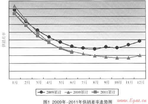 表1 2009年~2011年1月~6月供氣銷售對比表