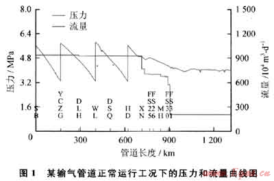 輸氣管道的運行工況可以分為正常工況和異常工況。。正常工況包括了管道啟輸、啟停壓縮機(jī)組、壓縮機(jī)組切換、越站輸氣、分輸用戶的氣量調(diào)整和氣源進(jìn)氣量的調(diào)整等。異常工況包括了管道泄漏(爆管)、管道堵塞(冰堵)、干線截斷閥意外關(guān)斷、運行機(jī)組故障停運、通訊中斷和站場故障停運等。