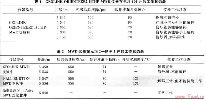 2) 川t東北工區(qū)的實踐表明:普通的HALLIBURTON MWD儀器的工作環(huán)境溫度不宜超過130℃;GEOLINK ORIENTEER2 HTHP儀器可適應(yīng)更高的溫度和壓力,但必須要求有足夠的底部鉆具壓降,當(dāng)其應(yīng)用于井深超過6000m的井時,底部鉆具壓降應(yīng)在800psi以上且鉆井液漏斗黏度不宜大于70s。