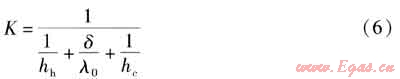 換熱器傳熱系數(shù)K的計算式為: