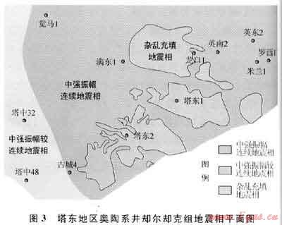 通過地震標(biāo)定表明,卻爾卻克組深水盆地相沉積以中強(qiáng)振幅、中等連續(xù)地震相為特征,濁積相以雜亂充填地震相為主要特征。地震相追蹤發(fā)現(xiàn)(圖3),東南部的塔東1~塔東2井區(qū)以雜亂充填地震相為主,烴源巖不發(fā)育,與鉆井吻合。東部的米蘭1、羅西1井區(qū)中強(qiáng)振幅、中等連續(xù)地震相發(fā)育,烴源巖厚度大。近期鉆探的古城4井卻爾卻克組為斜坡 盆地沉積[12],缺少濁積砂巖,為中強(qiáng)振幅較連續(xù)地震相,鉆探證實(shí)也有較好的烴源巖發(fā)育。