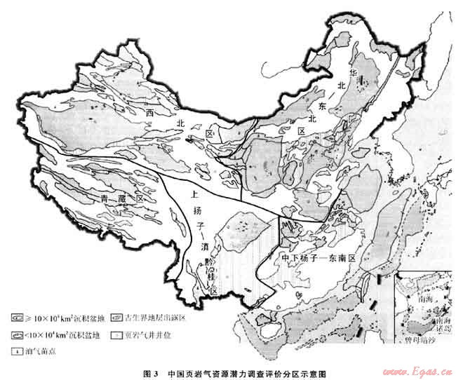 在全國范圍內(nèi),對中國頁巖氣資源潛力進(jìn)行總體評價,查明中國頁巖氣資源分布,優(yōu)選頁巖氣富集有利區(qū),初步摸清中國頁巖氣資源“家底”。2011年,國土資源部油氣中心以點面結(jié)合的方式,部署啟動了“全國頁巖氣資源潛力調(diào)查及有利區(qū)優(yōu)選”項目(圖3)。