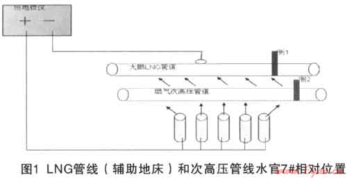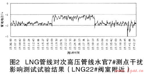 由于部分路段次高壓天然氣管道與上游LNG管道和成品油管道并行(采用外加電流陰極保護),為了判斷LNG管線對次高壓管線的影響,技術人員進行了現場測試,主要包括:LNG管線的保護電位、次高壓管線保護電位,并在LNG管線平湖門站陰極保護站恒電位儀開10分鐘一停10分鐘一開10分鐘共30分鐘的時間段內,用記錄儀檢測了次高壓管線的陰極保護電位波動情況。通過檢測發(fā)現,LNG管線和次高壓管線閉路電位都不穩(wěn),波動較大。