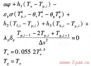 對(duì)于吸熱板,節(jié)點(diǎn)i的能量平衡方程為: