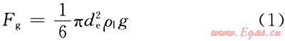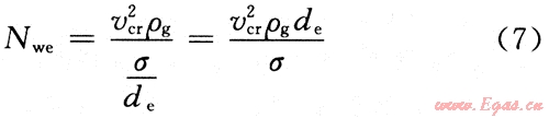 橢球體液滴韋伯?dāng)?shù)的臨界值為20~30。當(dāng)氣體流速大到足以使韋伯?dāng)?shù)達(dá)到臨界值時,速度壓力起主要作用,液滴就容易破壞。取韋伯?dāng)?shù)為Nwe=30回代到式(7),解出最大液滴的直徑(de),即