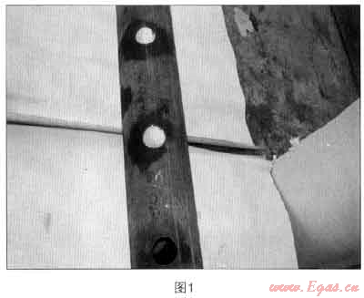 內(nèi)襯材料在封堵孔洞時(shí),受力點(diǎn)主要集中在孔洞的周邊上,所以,固有強(qiáng)度值S很形象也很實(shí)用,圖1顯示了3個(gè)孔洞,兩個(gè)已經(jīng)被內(nèi)襯封堵住。經(jīng)過多年的研究和數(shù)據(jù)收集,筆者選取3個(gè)不同來源的某種內(nèi)襯材料S值: