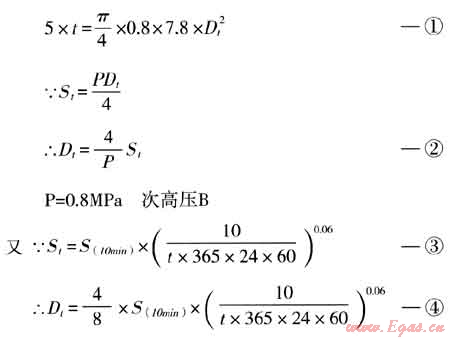 《城鎮(zhèn)燃?xì)饴竦劁撝乒艿栏g控制技術(shù)規(guī)程》CJJ95—2003中規(guī)定,土壤腐蝕性評(píng)價(jià)為強(qiáng)、中、輕、較輕、極輕5級(jí)。現(xiàn)取中級(jí)的平均腐蝕率值C=5g/dm2.a