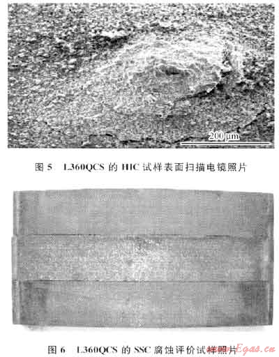 2) 采用淬火加回火工藝制造的L360QCS,S(0.003%)、P(0.02%)元素含量控制低,硬度小于248HV,在模擬普光氣田高含硫集輸工況的條件下沒有發(fā)生氫致開裂和硫化氫應(yīng)力開裂,管材的抗硫性能較好。