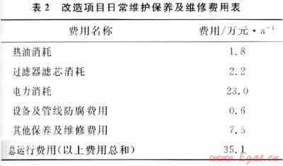 經改造后,整個系統的日常維護保養(yǎng)及維修均納入氣田生產設施制度化管理的范圍內,按照目前氣田相同設備的維修和維護成本估算,其費用支出為35.1萬元/a,改造項目日常維護保養(yǎng)及維修費用列表見表2。