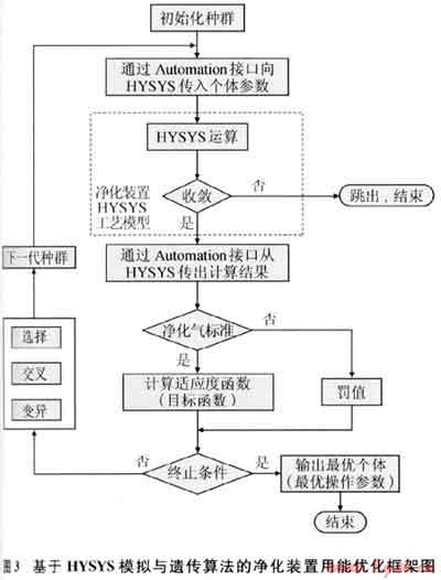摘要:為了降低含硫天然氣處理過程中的能量消耗和操作成本,應(yīng)用工業(yè)流程模擬軟件HYSYS建立了含硫天然氣凈化裝置工藝模型,并基于數(shù)據(jù)對象接口(Automation)技術(shù)開發(fā)了HYSYS與矩陣數(shù)值分析軟件Matlab之間的接口程序,將HYSYS工藝模型作為適值函數(shù)計算的基礎(chǔ)并入遺傳算法(GA)中,從而建立了基于HYSYS模擬和遺傳算法的天然氣凈化裝置用能優(yōu)化模型。應(yīng)用此優(yōu)化模型對川渝地區(qū)某50×104m3/d天然氣凈化裝置的用能進行了操作參