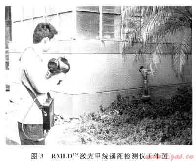 RMLDTM激光甲烷遙距檢測儀作為便攜式中的領(lǐng)先產(chǎn)品,采用了可調(diào)諧二極管激光吸收(TDLAS)技術(shù),可以調(diào)頻檢測C0和C02氣體的含量,并且能夠巡檢原來不能到達(dá)或不易到達(dá)的地方,不必將探頭置于可燃?xì)怏w的環(huán)境中,操作人員不用處于一些危險(xiǎn)的環(huán)境中,提高了工作環(huán)境的安全性,降低了操作人員的勞動強(qiáng)度。同時(shí)檢測儀預(yù)熱時(shí)間短,只需2~3min,且具有自檢和標(biāo)定的功能。RMLDTM激光甲烷遙距檢測儀工作圖如圖3所示。