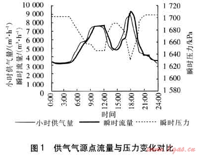 在城市燃氣發(fā)展到一定規(guī)模,最大小時用氣量超過管網(wǎng)系統(tǒng)設計的小時供氣量時,中壓管網(wǎng)的壓力波動將會進一步加大,中壓管網(wǎng)儲氣用于小時調峰在多大程度上能夠滿足管網(wǎng)系統(tǒng)安全可靠地運行,就是一個值得探討的問題。