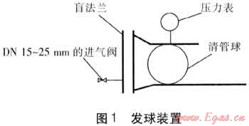 ② 在管道強(qiáng)度試驗(yàn)中,高壓、超過(guò)0.8MPa的次高壓鋼質(zhì)管道不得采用壓縮空氣試驗(yàn),而應(yīng)采用水壓試驗(yàn)。試壓結(jié)束后管道中的水如何排凈,通球[1~2]又成了最佳選擇。