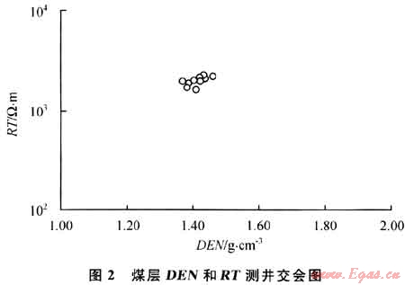 在相同程度的煤化作用下,電阻率一般反映煤巖成分和煤質(zhì),電阻率越高,表明煤層灰分越低,煤質(zhì)越好,絲炭含量和煤層受氧化是煤層電阻率降低的主要因素,低電阻往往也就直接反映了相對低的煤層含氣量;聲波時差值顯示了煤層的壓實程度和孔隙;補償中子則表示煤巖的含氫指數(shù);補償密度則指示煤巖的變質(zhì)程度和含氣量。從測井交會圖(圖2)中可以看出,該煤層的測井響應反映出了絲炭含量低、灰分中等、弱含水的特征。