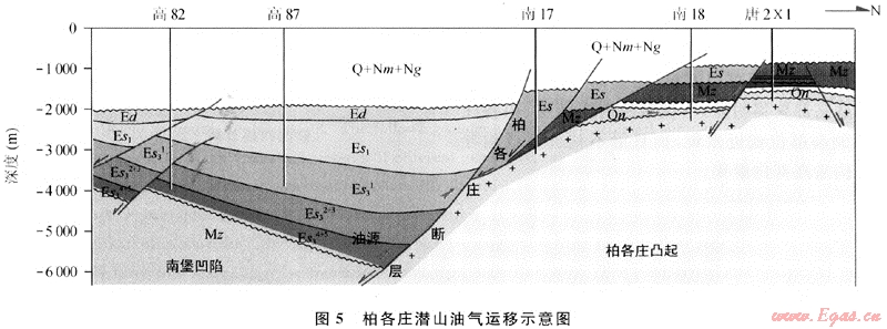 5) 下生上儲、新生古儲、油氣在構(gòu)造高部聚集成藏,構(gòu)造高部位是本區(qū)主要的油氣聚集帶。從以往的油氣勘探成果圖可以看出,南堡凹陷周邊地區(qū)油氣在構(gòu)造高部聚集明顯,不僅沿西南莊斷層、柏各莊斷層兩側(cè)高部位就近聚集,而且沿不整合面或輸導(dǎo)儲層向構(gòu)造高部位聚集。