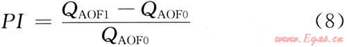 根據(jù)防砂前后的產(chǎn)能試井資料計算出的無阻流量可計算相應(yīng)的變化比,變化比的大小反應(yīng)防砂措施改善井底流動條件的好壞。假設(shè)防砂前、后的氣井無阻流量為QAOF0和QAOF1,則變化比(PI)為: