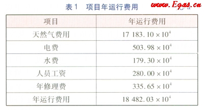 天然氣是一種清潔、優(yōu)質(zhì)、使用方便的能源。與燃煤鍋爐房相比,燃氣鍋爐房可省去脫硫、除塵、上煤、除渣等設(shè)備,無需煤、渣堆場,節(jié)省用地,運行管理較簡單。該項目供熱面積為612×104m2,鍋爐熱效率取0.95,天然氣的低熱值為35.16MJm3,天然氣額定耗量為36400m3h。天然氣價格按1.65元/m3算,電價按0.59元/(kW·h)計算,水價按5.5元/t計算,人員工資按4×104(·a)計算,年維修費按設(shè)備造價的1.8%計算。項目年運行費用見表1。由表1可知,項目的年運行費用為18482.03×104元/a。項目造價為25140.38×104元,使用壽命為20a,年收益率為5%。采用費用年值法對項目進行經(jīng)濟性分析,費用年值F的計算式為: