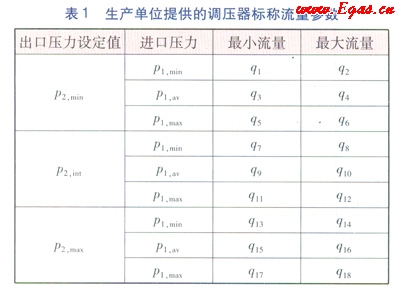 生產(chǎn)單位提供的調(diào)壓器的標稱流量參數(shù)見表1。表1中的p2,int為調(diào)壓器的標稱中間出口壓力設(shè)定值,p1,av為調(diào)壓器的標稱平均進口壓力值。