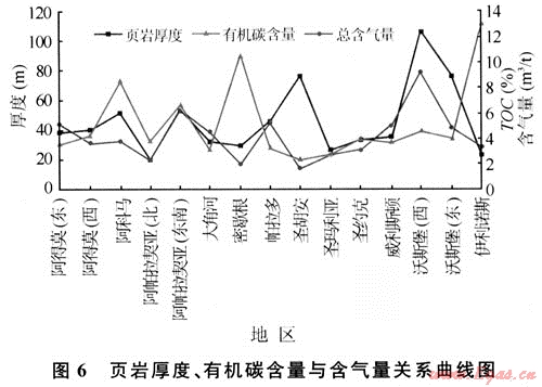 需要指出的是,頁(yè)巖有效厚度的下限不是一個(gè)固定值,其隨著頁(yè)巖氣藏鉆、完井技術(shù)的進(jìn)步而變化。北美在頁(yè)巖氣藏開發(fā)的早期是打直井,當(dāng)時(shí)確定的頁(yè)巖有效厚度下限值為30m。目前,由于水平井鉆井技術(shù)和水力壓裂、分段壓裂等完井技術(shù)的成功應(yīng)用,頁(yè)巖有效厚度下限值已降至10~15m。將來(lái)在技術(shù)進(jìn)一步提高、開發(fā)成本不斷降低的情況下,只要是在技術(shù)允許范圍內(nèi)的頁(yè)巖厚度都會(huì)是有效頁(yè)巖厚度[2]。