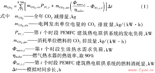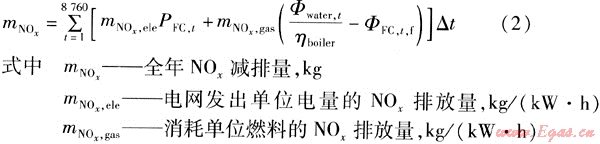 PEMFC建筑熱電聯(lián)供系統(tǒng)年C02和N0x減排量按下式計(jì)算: