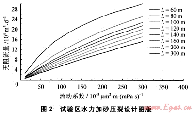 采用節(jié)點模型開展地層流動物性與裂縫長度之間相關(guān)性分析、預(yù)測不同裂縫與地層匹配情況下的無阻流量、根據(jù)前期試驗成果及微型注入測試分析,建立了試驗區(qū)壓裂設(shè)計圖版(圖2),該圖版與現(xiàn)場試驗結(jié)果具有很好的一致性。