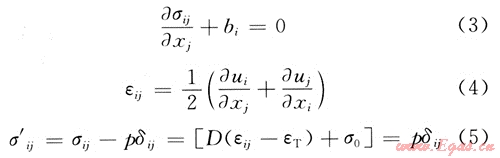 與常規(guī)應(yīng)力應(yīng)變方程相比,式(5)增加了熱應(yīng)變項、初始地應(yīng)力項和流體壓力項,以表征3個物理場之間的耦合作用。