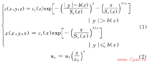 垂直和水平特征擴(kuò)散參數(shù)控制方程[3]: