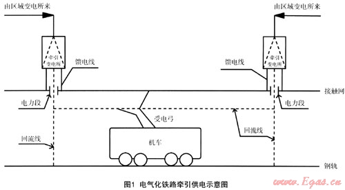 電氣化鐵路牽引供電電流種類可分為3種電流制:直流制、低頻單相交流制和工頻單相交流制。目前,我國電氣化鐵路均為采用工頻單卡H25kV交流制。這種電流制式不需要在牽引變電所設(shè)置整流和變頻設(shè)備,能直接從具有強(qiáng)大容量的電力系統(tǒng)取得電能,并以較高的電壓向電力機(jī)車供電,使?fàn)恳冸娝墓╇娫O(shè)備簡單化,牽引變電所間距離增大,接觸導(dǎo)線截面縮小,減少了電能的損失,降低了建設(shè)投資和運(yùn)營費(fèi)用[1]。