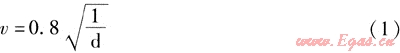根據(jù)國外實驗得出以下管道燃氣安全流速公式[3]