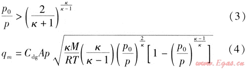 當(dāng)滿足式(3)時,氣體流動屬于亞聲速流動,燃?xì)庑孤┧俾视檬?4)計(jì)算[9]
