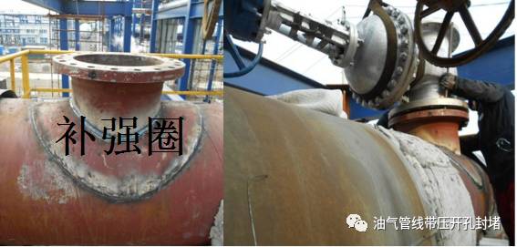 以上兩種施工工藝,根據(jù)主管線的設(shè)計壓力等級、開孔口徑是否>D/2(D為管道的公稱直徑)可選擇全包開孔管件和非全包管件;當(dāng)管線設(shè)計壓力等級不超2.5Mpa時,開孔口徑>D/2時,也可選用較為經(jīng)濟(jì)的補(bǔ)強(qiáng)圈措施對母管線進(jìn)行補(bǔ)強(qiáng)處理。