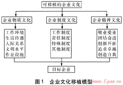 事實證明,買到技術、產品和服務易如反掌,而要重復一個企業(yè)的文化和經營方式則極為困難。因此,燃氣企業(yè)在合資、兼并收購其他企業(yè)后,要成功移植企業(yè)的優(yōu)質文化,需要經歷一個比較艱難的過程。結合企業(yè)文化的內容,企業(yè)文化擴張方式應該是建立在企業(yè)精神的基礎上,以完整的管理制度為依托,以鮮明的企業(yè)形象為載體,符合目標消費群的精神和物質需要[5]。企業(yè)文化移植模型見圖1。