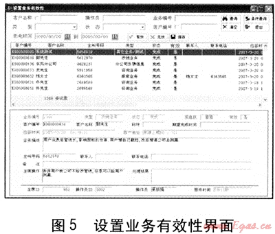 設(shè)置業(yè)務(wù)有效性界面見圖5,大慶燃?xì)饪蛻舴?wù)系統(tǒng)采用先進(jìn)的CTI技術(shù),友好的語音導(dǎo)航服務(wù)提高了服務(wù)質(zhì)量;電話接入后系統(tǒng)可自動定位客戶,實(shí)現(xiàn)客戶數(shù)據(jù)與電話的同步轉(zhuǎn)移,大大提高了坐席的工作效率和服務(wù)水平;可實(shí)現(xiàn)客戶發(fā)送傳真的自動接收,支持人工在線派發(fā)和處理,提高了效率,降低了運(yùn)營成本,可以滿足將來不斷發(fā)展的燃?xì)饪蛻魳I(yè)務(wù)需求。該系統(tǒng)的具體功能如下: