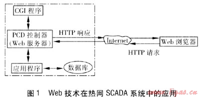 在采用基于Web技術(shù)用戶界面理念的熱網(wǎng)SCADA系統(tǒng)中,PCD控制器就代表了配備有圖形顯示功能的Web服務(wù)器。從根本上說,PCD控制器也是Web服務(wù)器,操作界面僅只是客戶端而已,這樣就簡化了通信過程。而常規(guī)熱網(wǎng)SCADA系統(tǒng)所采用的現(xiàn)場控制器不具備Web服務(wù)器的功能。