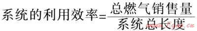 大量的國內(nèi)外資料表明,城市管網(wǎng)管線長度與銷售量有明顯的線性關(guān)系,國際上常以總銷量(106m3)與系統(tǒng)總長度(km)的比值表示——燃?xì)廨斉湎到y(tǒng)的利用效率[1]: