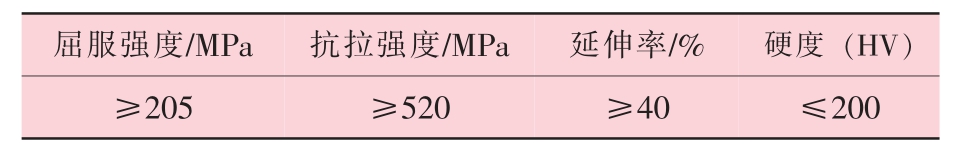 表2 022Cr17Ni12Mo2 不銹鋼的力學(xué)性能