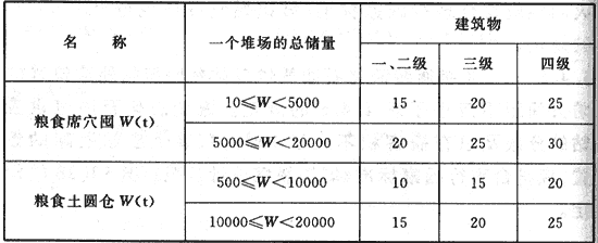 不同性質(zhì)物品堆場之間的防火間距,不應小于本表相應儲量堆場與四級耐火等級建筑物防火間距的較大值。