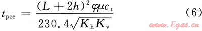 對(duì)于式(5),t0可理解為水平井開(kāi)井生產(chǎn)至垂直平面徑向流結(jié)束時(shí)間,記為tpce;r0為擬圓形坑道外緣半徑,記為rpce。關(guān)于tpce的確定,利用Giger等人提出的等效滲透率的方法[4],并結(jié)合式(1)以及tpce的表達(dá)式可以容易得出:
