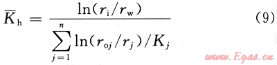 當(dāng)考慮徑向復(fù)合油氣藏的情形時(shí),本文參考文獻(xiàn)[5]、[6]給出了平均水平滲透率可表示為: