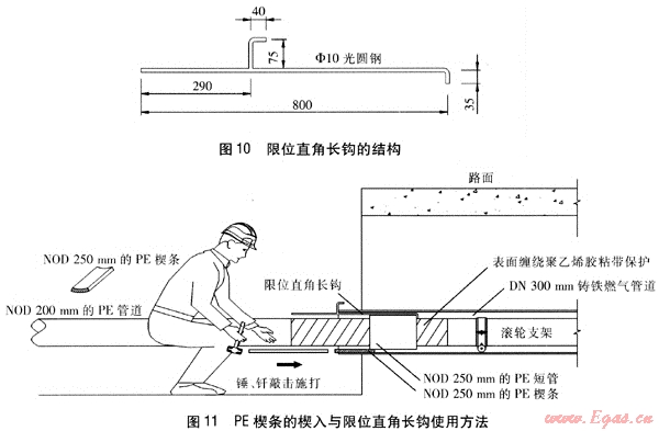 Key words:gas pipeline repair;east iron pipe;PE pipe;roller bracket;insertion