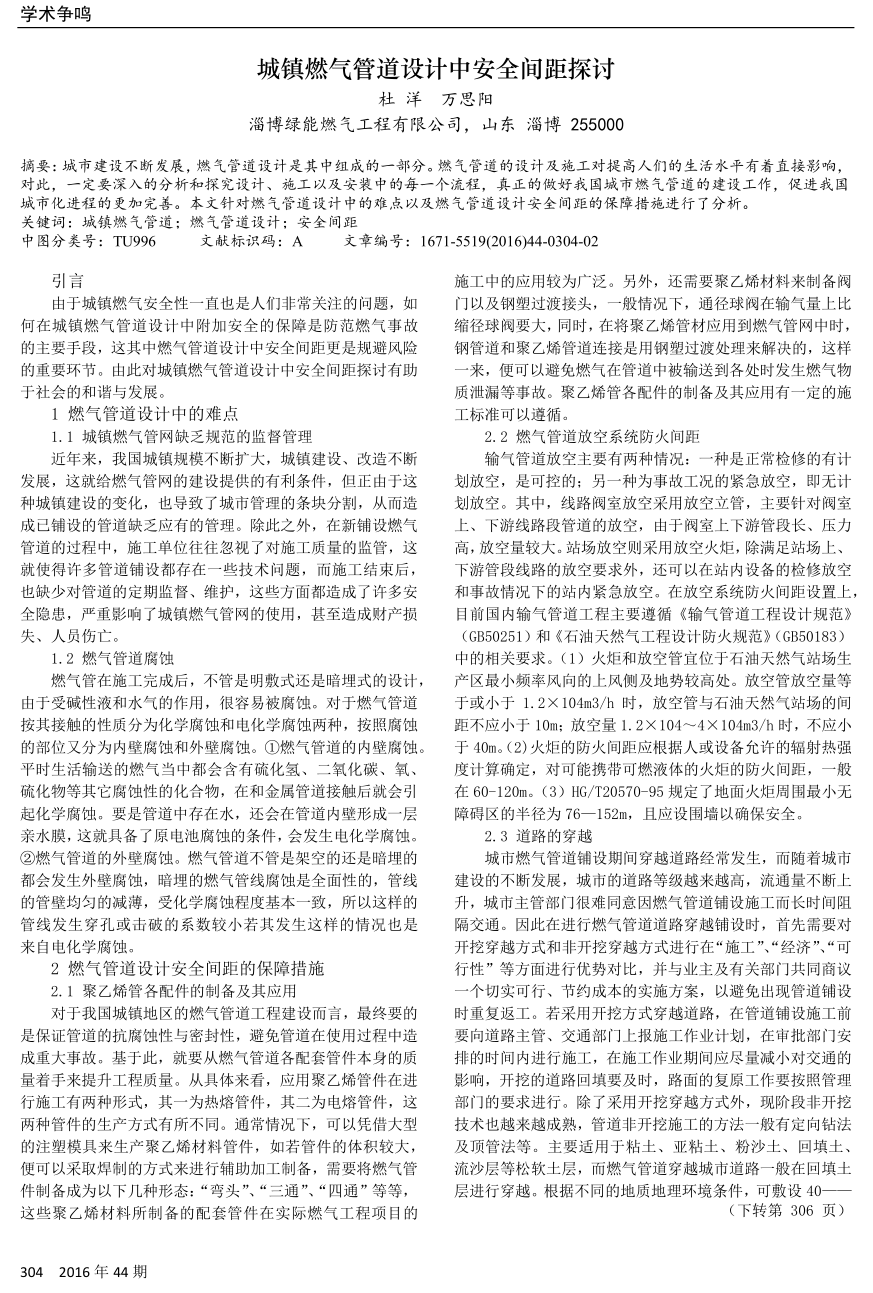 城鎮(zhèn)燃?xì)夤艿涝O(shè)計(jì)中安全間距探討