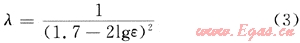 式(2)中段塞密度可取原油密度,段塞速度可取流體混合流速,因沖擊流處于水力粗糙區(qū),在該流態(tài)區(qū)內(nèi),λ僅與管壁相對(duì)粗糙度(ε)有關(guān),可用尼古拉茲公式求水力摩擦系數(shù),計(jì)算公式見式(3):